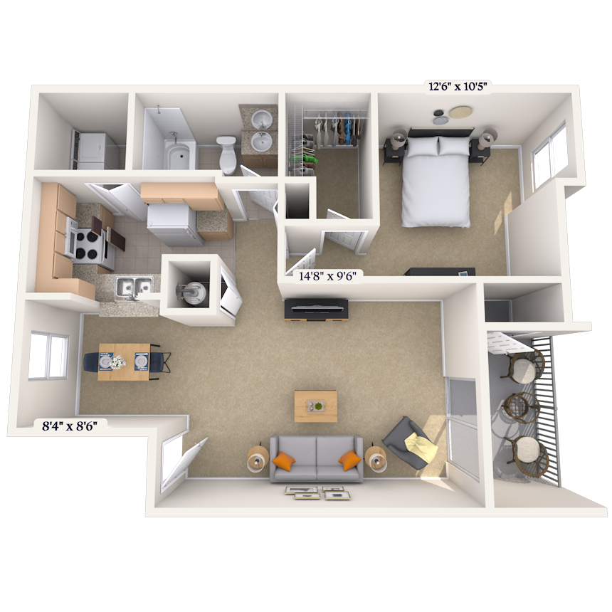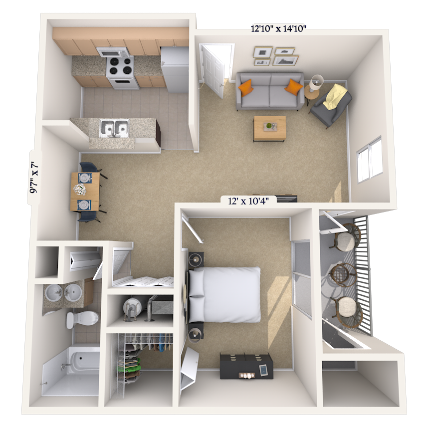 Floorplan images are for illustrative purposes only as square footage, dimensions, finishes, and layouts may vary between individual apartments. Contact the Leasing Office for details on specific apartment homes.