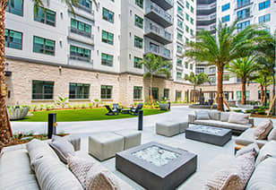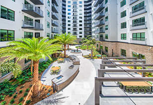 Enjoy the rooftop saltwater pool with city views and the fully equipped fitness center and yoga studio featuring the Echelon Reflect touchscreen. Relax with friends in the street-side lounge or clubhouse, or head to the courtyard promenade for grilling, ping-pong, and more. When you need to get productive, visit the coffee bar and business center. Exceptional amenities like concierge service and climate-controlled hallways allow you to live in luxury while remaining accessible to many retail and dining options. Don’t forget Fido – he’ll love the Bark Park and pet-washing station at our pet-friendly community