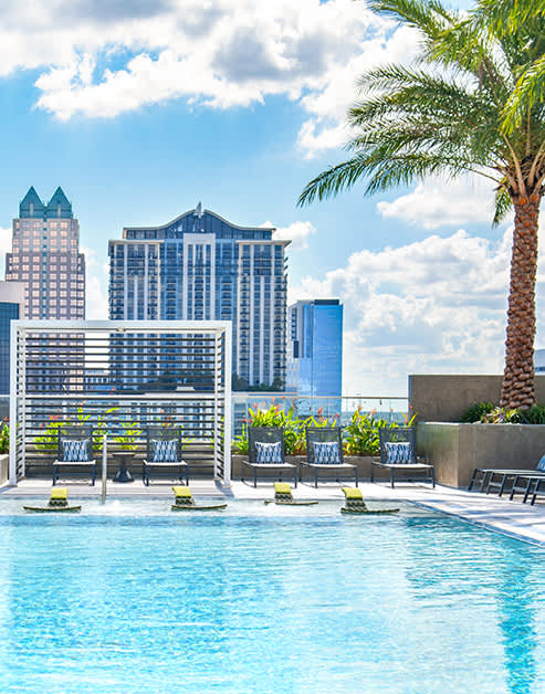 Experience the convenience of downtown Orlando living in a secluded setting at MAA Robinson. Our community has amenities like a rooftop pool, fitness center, yoga studio, coffee bar, and dog park that welcomes all breeds. You'll find open floor plans, a washer/dryer, and modern appliances inside our homes.