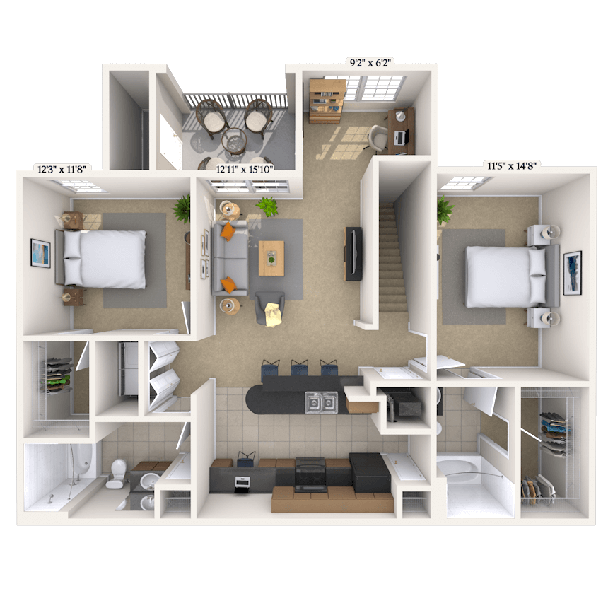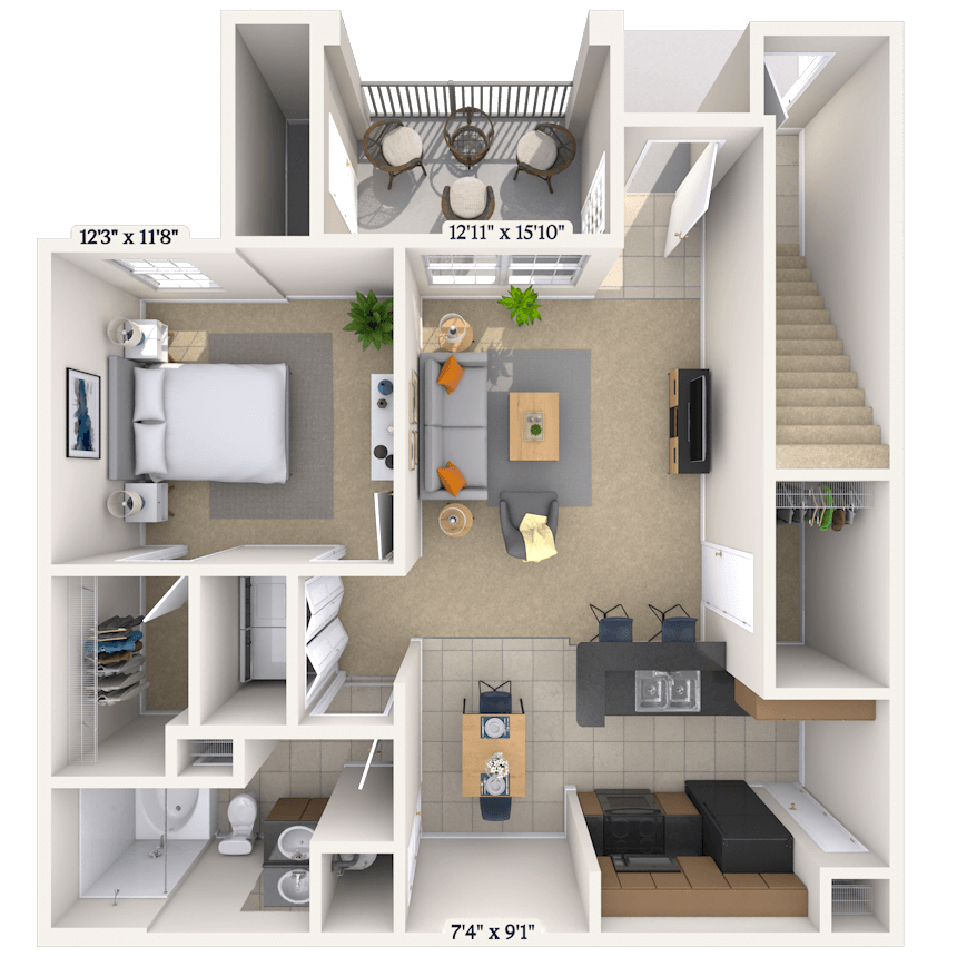 Floorplan images are for illustrative purposes only as square footage, dimensions, finishes, and layouts may vary between individual apartments. Contact the Leasing Office for details on specific apartment homes.