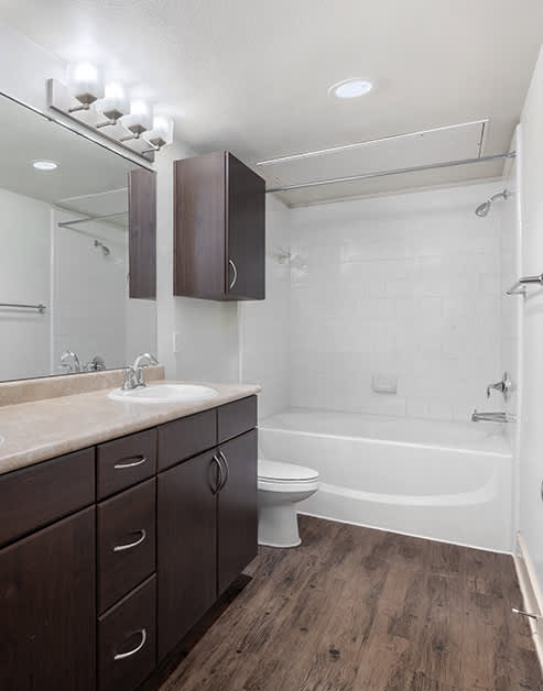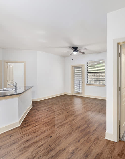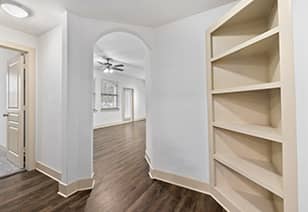 MAA Lowes Farm apartment rentals in Mansfield boast spacious one-bedroom, two-bedroom, and three-bedroom homes. Our community is known for spacious designer interiors and beautiful, natural surroundings. Step onto a screened patio or balcony to enjoy a quiet moment outdoors and take advantage of large walk-in closets. Cook and entertain in a beautifully appointed kitchen, where espresso cabinets, black appliances, and quartz or tan countertops provide a perfect backdrop for everything from morning coffee to dinner with friends. Select homes also include a functional kitchen island, ideal for meal prep. Retreat to a spa-inspired bathroom featuring double vanities, a deep garden tub for long soaks, or a separate shower for a refreshing start to the day. Vaulted ceilings add an airy elegance, while built-in bookshelves and desks create a cozy space for work or relaxation. Select apartments have hardwood flooring, vaulted ceilings, and attached garages.