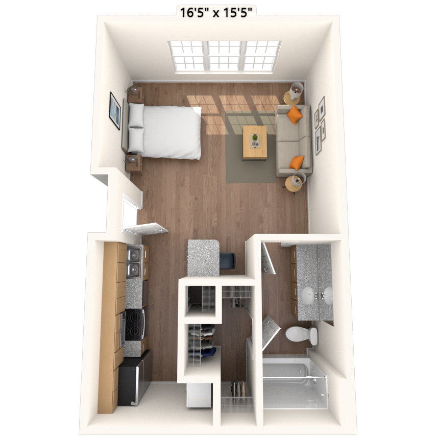 - Studio, 1 Bath